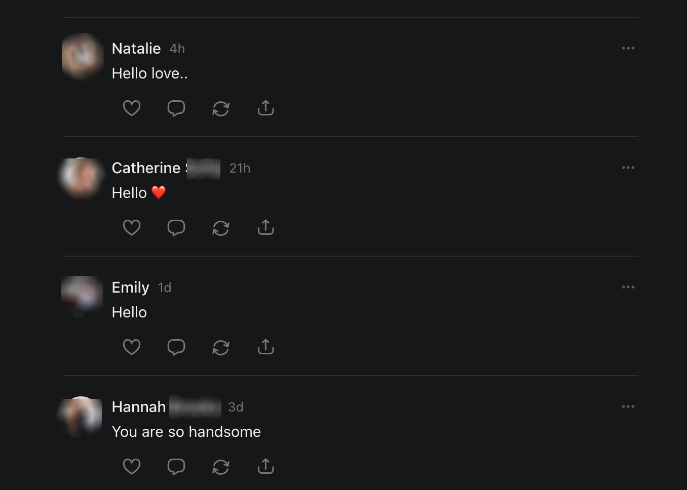 If you’re active on Substack Notes, you may have noticed an influx of odd, overly friendly comments from unfamiliar profiles. You might post a light-hearted note, a joke, or even a selfie, and suddenly your comments fill with messages like “Hi handsome,” “You look good,” or simply “Hello.”